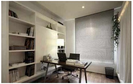 把電視臥入墻里,使屏幕與墻體保持水平,在兩側(cè)均勻打上小孔不會(huì)影響聲音效果。書房門運(yùn)用隱藏式的設(shè)計(jì)理念,沒有制作門口,使得視聽墻具有很好的整體效果,書房門面寫著古詩(shī)書法,宣紙質(zhì)感配以草墩將一絲禪意緩緩的流露出來(lái)。