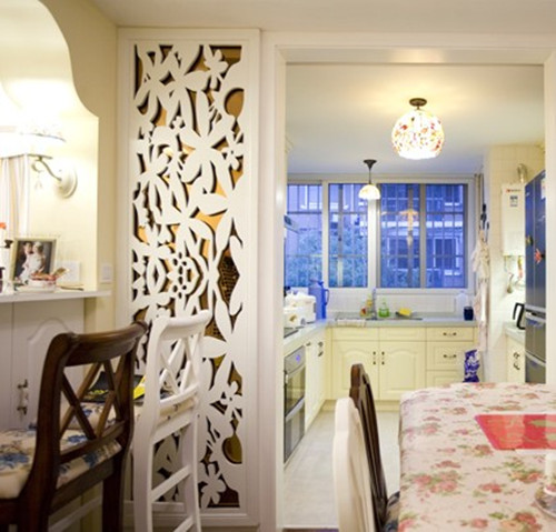 餐廳與廚房的小全景,田園風格發(fā)揮到極致。