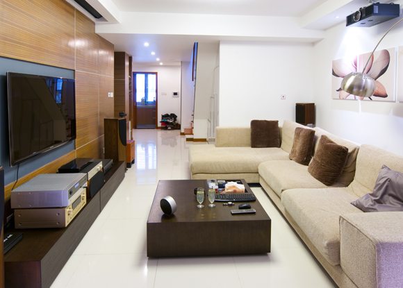 客廳是中規(guī)中距的房型,線條清爽。顏色也是清楚的,淡淡灰色布藝沙發(fā),溫馨感洋溢。