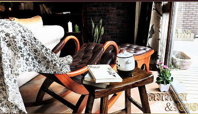 搖椅和壁爐旁邊的小書架都是從外貿(mào)倉庫淘的