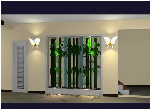 綠色竹子兩旁精致的蝴蝶造型壁燈,是不是錦上添花呢?
