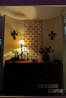 從拱形馬賽克裝飾啞口 看照片墻照片是按照設計師給的尺寸洗出來 她陪我選好相框以后我和老公自己安裝的 為了讓照片的位置正確 我們費了很大的力氣,最后效果很滿意 超有成就感。