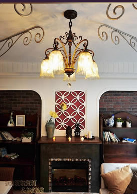 壁爐裝飾花板是按照設計師的圖紙定做的,電壁爐在暖氣未到的時候寥解清冷。