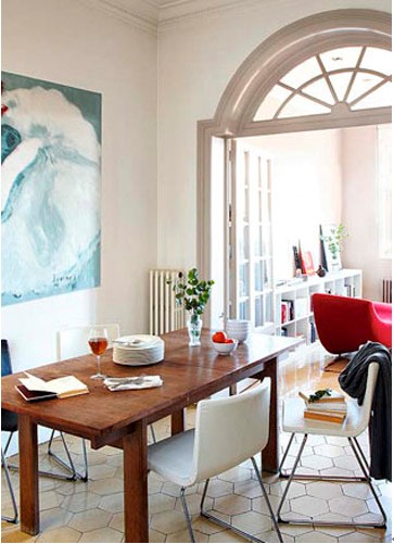 敦厚的木質(zhì)餐桌造型讓空間看起來(lái)大氣很多,拱形門的運(yùn)用則有良好的視覺(jué)通透性。飾品方面色彩的對(duì)比強(qiáng)烈,立刻讓空間變得飽滿和鮮活起來(lái)。