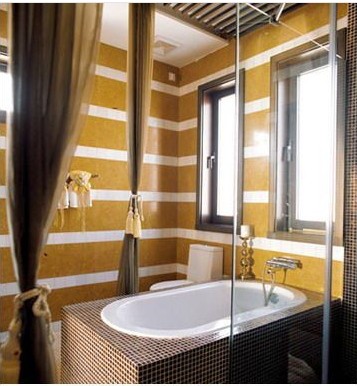 如今洗浴已經(jīng)是一種生活方式,尤其泡澡時注重周圍環(huán)境的氛圍,通常衛(wèi)生間里的環(huán)境都是冷硬的浴具和磚墻,為了讓洗浴時心情更加愉悅,不妨在浴缸周圍垂下紗質(zhì)帷幔,在若隱若現(xiàn)中營造浪漫氛圍,而平時不使用時,也可以用精選的窗簾流蘇墜系扎起來,則又是另一番情調(diào)。