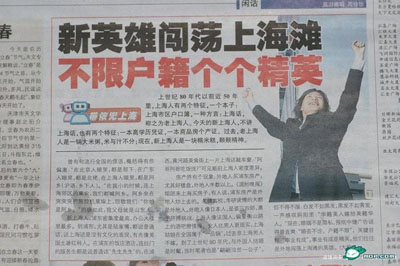 日前,上海有家報(bào)紙刊登了一篇題為《新英雄闖蕩上海灘,不限戶籍個(gè)個(gè)精英》的文章,文章寫道:“‘新上海人’,浦東密集度最高,辦公大樓里最多。到浦東,尤其是陸家嘴,都說普通話,說上海話是沒有文化的表現(xiàn)。在浦東的飯店酒店,連拉門的服務(wù)生都是說普通話‘先生先生’的,在浦西,黃河路美食街上一片上海話敲車窗:‘阿哥阿哥吃飯伐?’可見新舊上海人密度差異?!蔽丛氪宋膰?yán)重刺激了正宗上海人的情緒,招來一片討伐之聲。導(dǎo)致的結(jié)果就是該報(bào)社區(qū)版編輯部發(fā)表致歉聲明。但是,“道地上海人”的怒氣遠(yuǎn)遠(yuǎn)未能平息,他們進(jìn)一步要求報(bào)紙?jiān)陬^版發(fā)表致歉聲明。