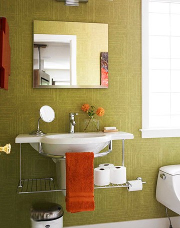 窗戶帶來的新鮮空氣一改衛(wèi)浴間沉悶潮濕的環(huán)境,耀眼的光線帶給你一整天的新鮮。框框相連、框框相扣的綠色圖案背景讓衛(wèi)浴間更加歡快。