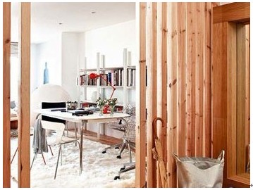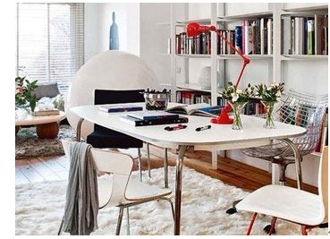 白色的空間內(nèi)必定少不了糖果色的點綴。一把造型新穎的休閑靠椅,一盞橘紅色的臺燈,書架上琳瑯滿目的書架,都是紅與白的完美搭配,素雅中隱藏著熱情,也使整個空間充滿現(xiàn)代感。