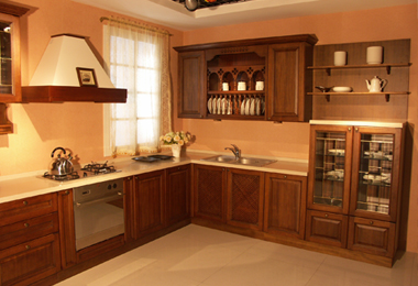 使用實(shí)木制作櫥柜門板,風(fēng)格多為古典型,通常價(jià)位較高。其門框?yàn)閷?shí)木,以櫻桃木色、胡桃木色、橡木色為主。門芯為中密度板貼實(shí)木皮,制作中一般在實(shí)木表面做凹凸造型,外噴漆,從而保持了原木色且造型優(yōu)美。這樣可以保證實(shí)木的特殊視覺(jué)效果,邊框與芯板組合又可以保證門板強(qiáng)度。