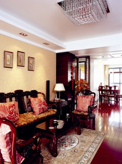 略帶古典中式風格的客廳,燈具是華麗的水晶燈,似科這里更應(yīng)該出現(xiàn)燈籠這類似統(tǒng)才更美觀,但不要忘了,家是要滿足平日生活需求的,我們需要電,它更能給予我們生活方便。