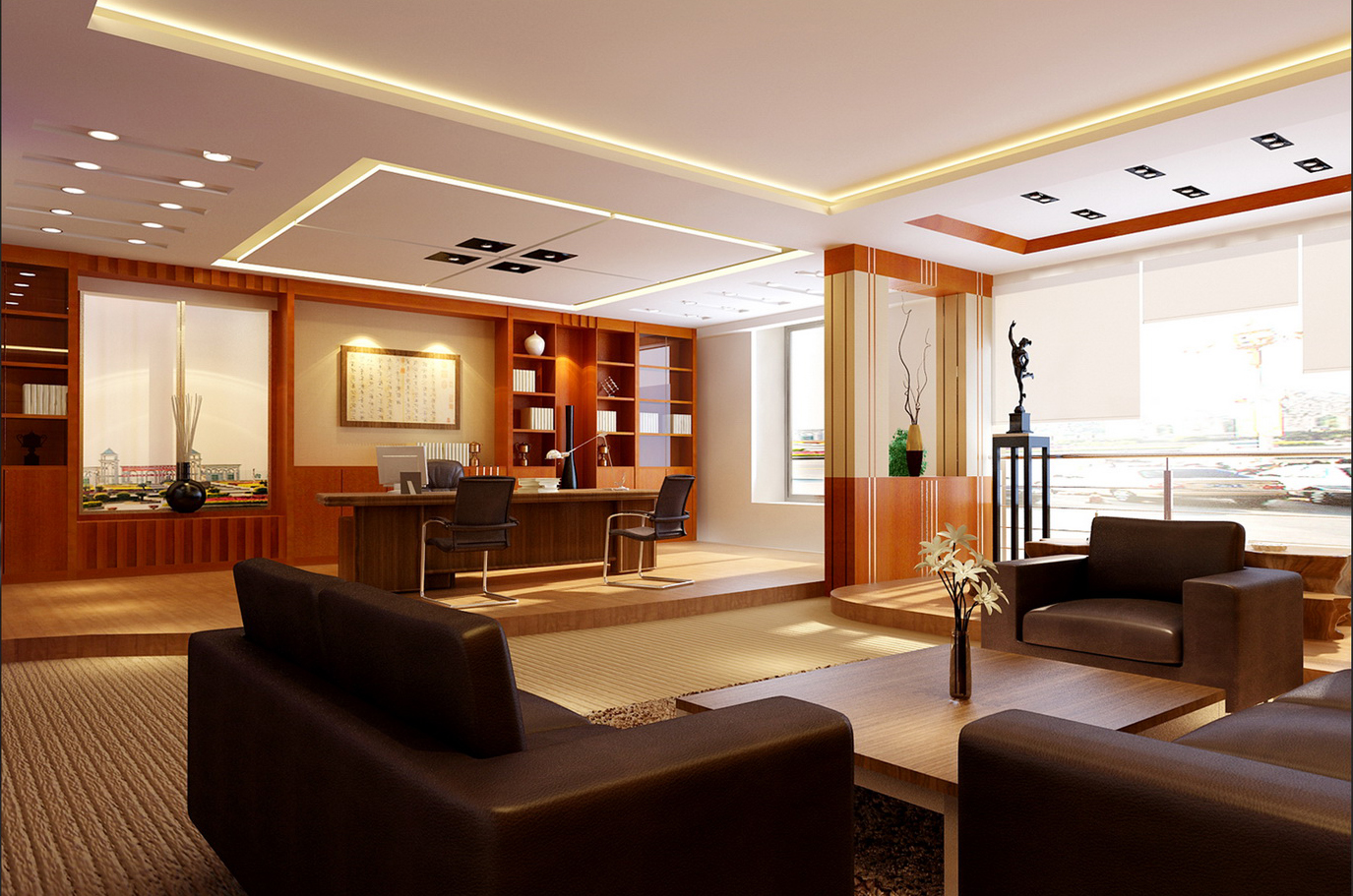 整體效果:陰陽和諧,動靜協(xié)調(diào),迎送有位,主賓有序,定變有常,十方有分。 方和位的確定: 十方八向構(gòu)成了“方向”的內(nèi)涵,人在“向”中為客,人在“方”中為主。老板辦公室布置以“方”為主,“方”是指前、后、左、右、右前、左后、左前、右后、上、下十個方位構(gòu)成,“向”是由指南針所指示定下來的向位,特指東、西、南、北、東北、西北、東南、西南八個向位。