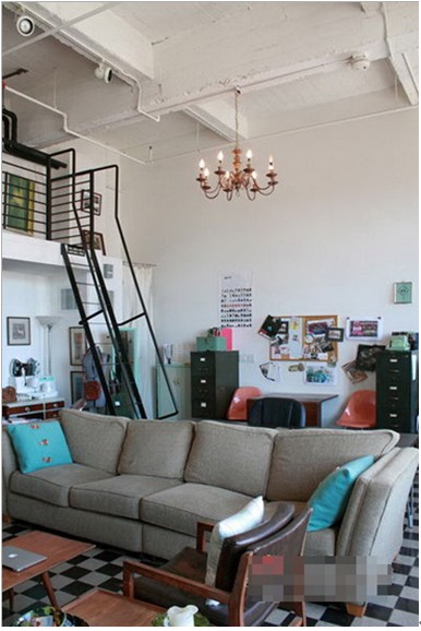 一眼望去挑眼的湖藍(lán)色引入眼簾,客廳上上下下,都分布了矩形。鏡子、液晶電視、電視柜、茶幾、靠枕、地板都是方形結(jié)構(gòu)。大大小小的矩形,色彩各異,但也有相同的特征,那便是讓家居裝修呈現(xiàn)一種異常的完整感。條條框框的菱形讓白色墻壁形成不同色塊的分隔,增加色彩和空間的層次感。小小的水晶吊燈填補(bǔ)了上層過(guò)于空曠的空間。