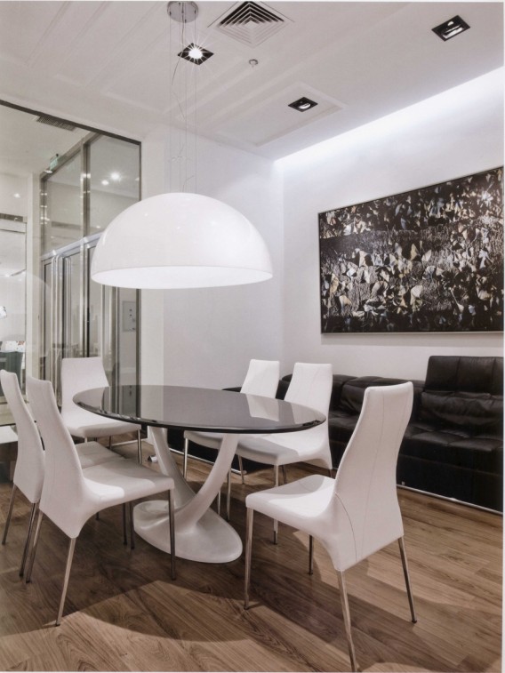 大氣而不俗的風(fēng)格定位,讓本案設(shè)計(jì)必須配合新古典主義的風(fēng)尚和簡(jiǎn)約寫意的風(fēng)格。室內(nèi)基本比較簡(jiǎn)潔,利用黑白兩個(gè)分區(qū)把新古典主義和現(xiàn)代風(fēng)格區(qū)分開來,深色玻璃讓兩個(gè)空間分開的同時(shí)又相互聯(lián)系。高貴而大氣是本案的核心品質(zhì),室內(nèi)設(shè)計(jì)必須努力做到這一點(diǎn),才能與之相一致。當(dāng)人站在深色的空間時(shí),遠(yuǎn)處淺色的空間也同樣吸引著你的視線。淺色空間里帶有金屬光澤的家具足以吸引人們進(jìn)另一個(gè)空間,這就利用了視覺心理,讓人們的視線在這個(gè)空間彼此交替。
