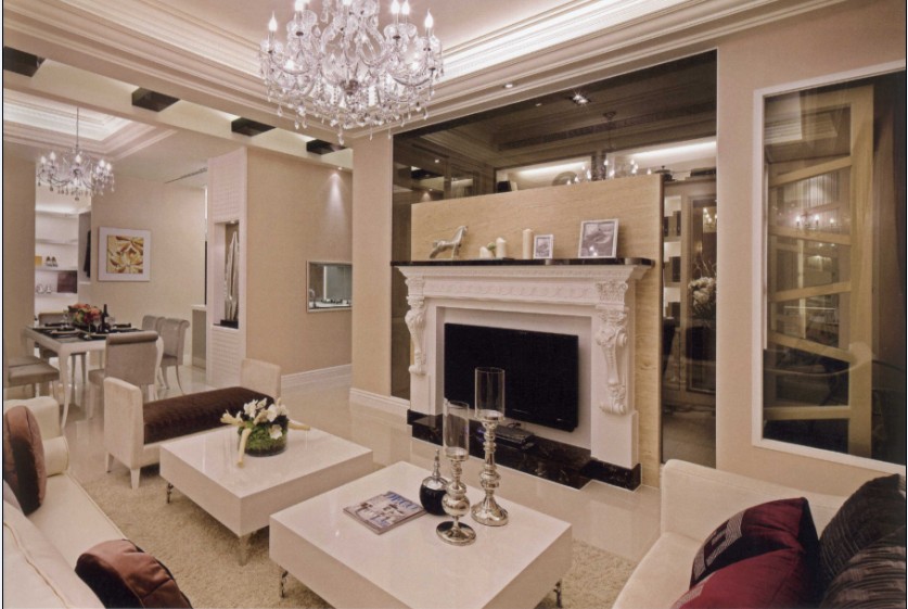 這個(gè)客廳其實(shí)并不大,它到處都洋溢著一和諧氣息。一派大氣優(yōu)雅的大家風(fēng)范,美式古典壁爐以精致的雕花展現(xiàn)風(fēng)情。空間不需要太大,夠用就剛剛好了。