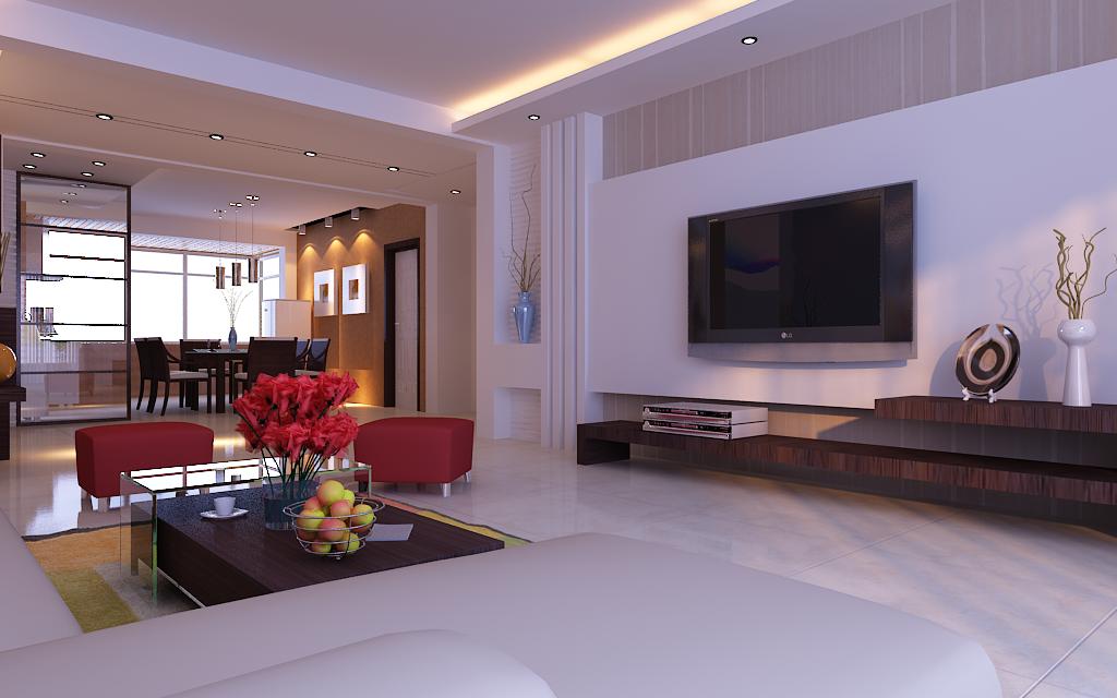 在功能方面,客廳是家品位的象征,體現(xiàn)了主人的品位,有時候朋友或者親戚到家里來做客,這也算是交友娛樂的場合,客廳的電視背景墻采用了簡單的石膏板造型,并做出凹凸的效果,石膏板中間做一個懸掛的臺面,上面放一個有干枝的裝飾瓶做裝飾。貼白色的波浪板做裝飾。電視墻上的豎紋墻紙既簡單又大方。線形的電視柜是密度板基層外貼胡桃木飾面板??蛷d的沙發(fā)采用的是紅白相搭配的布藝沙發(fā)。再配上玻璃搭配實(shí)木的餐幾,試想想,一家人都坐在布藝的沙發(fā)上聊天,看電視那是一個多么溫馨的場面!客廳的沙發(fā)背景墻只做了簡單的處理,用細(xì)木工板貼上黑色的亞克力板,做了一個懸掛的臺面,上面可以放裝飾畫等,一些裝飾品非常實(shí)用。