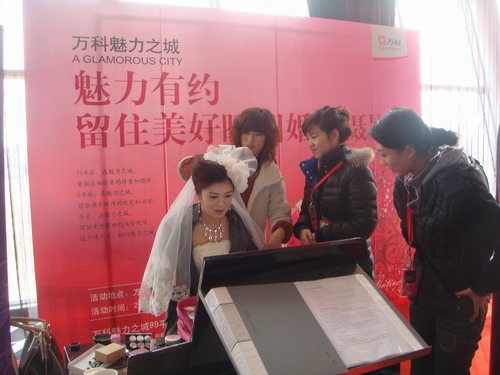 情人節(jié)這天,魅力之城邀請婚紗攝影店親臨現(xiàn)場為客戶拍攝婚紗照,拍攝地點選擇在精致的樣板間內(nèi)。報名客戶免費化妝、將拍攝了10多組照片,贈送底片光盤及現(xiàn)場打印照片。