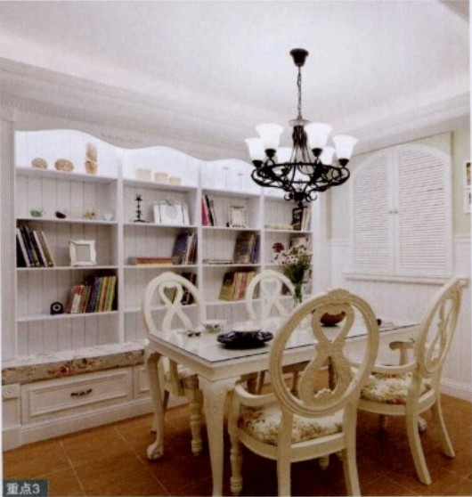 概要: 業(yè)主鐘情于美式鄉(xiāng)村風(fēng)格,于是設(shè)計師就將這個四房改成三房,將位于客廳旁的房間拆除,規(guī)劃開放式餐廳與書房,特意選擇古典風(fēng)格中常見的Shutter窗的形式結(jié)合百葉串連空間,讓空間在開闊之余仍具個性風(fēng)格。對于一個愛閱讀的業(yè)主,書籍的擺放收納自然是重點了,設(shè)計師特意將書房與餐廳合并,書柜同時也可以作為餐柜使用,讓家人可以一起用餐、看書。這個似乎有違健康飲食的作法呢。