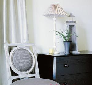 簡約流暢的深色家具,以及條紋壁紙構(gòu)成的背景,營造出深邃的知性空間,獨特的遮光簾更以婉約的東方美增添了書香古韻,臺燈和工藝品則以不俗的造型成為調(diào)適心情的閃光點。