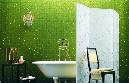 玻璃馬賽克與陶瓷馬賽克有所不同的是,玻璃馬賽克的色彩鮮艷搶眼、絢麗多彩,在光影中散發(fā)著夢(mèng)幻班色彩,給馬賽克帶來蓬勃生機(jī)。圖中的馬賽克運(yùn)用在了一個(gè)顏色較深的衛(wèi)生間中,顏色深固然選擇玻璃馬賽克來拉伸空間的層次感和它的明亮度。在燈光的投射下變換出別樣的風(fēng)景。這正是玻璃馬賽克的魅力所在。