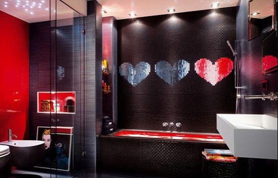 將黑色、藍(lán)色、白色不同顏色的馬賽克拼貼在一起,雜而不亂,還起到美化家居的作用。再將冷色調(diào)與暖色調(diào)想結(jié)合豐富空間層次感。