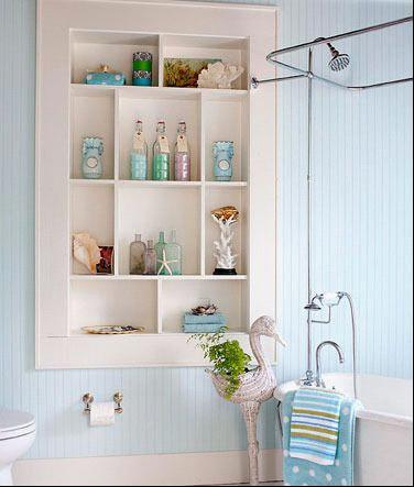 如果家里浴室的收納功能你嫌小,你可以充分運(yùn)用墻面這一地方,其嵌入式的柜子不但可以增加你的儲(chǔ)物功能,而且很好的避免了小衛(wèi)生間雜亂無章的尷尬局面,很好的彌補(bǔ)了小空間收納功能小的局面。