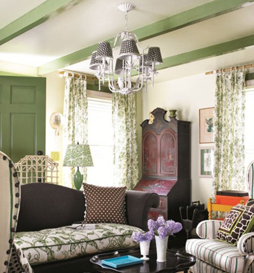 整個房間背景墻面涂上了明亮的綠色,令空間顯得有機而自然。白色是調和色彩的最佳選擇,房間里并沒有運用太多的綠色,而是選用橫梁和門板位置涂層,大部分墻面還是選用了常見的白色,在搭配上些復古濃厚的布藝沙發(fā)和其他家具,一間富有英式風味的客廳就打造完畢啦!