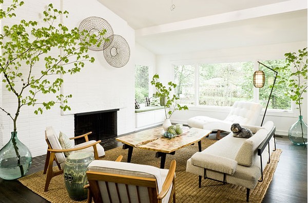 綠色植物在這個(gè)空間里很常見,在某個(gè)拐角,在某個(gè)過道,一個(gè)大棵綠色植物就會(huì)出現(xiàn)在我們面前。以簡約白色為墻面裝飾的空間里,綠色總是最好的點(diǎn)綴品。
