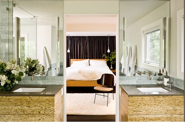 這個(gè)是從主臥衛(wèi)生間的角度來里面,地面的長毛地毯可以吸收噪音,增加居室空間的舒適度。而主臥衛(wèi)生間的色調(diào)結(jié)合臥室里淡雅更能給予人們春天暖陽的感覺。