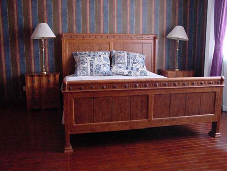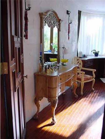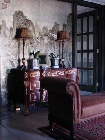 我家里的很多木制的門、書柜、櫥柜都是有呼吸、有生命的。即便有些地方刷上了大綠,別人可能會想綠色很怯,但經(jīng)我處理以后,這個綠是透明的。每一處木頭的顏色都反復做了很多遍,手撫摩的時候非常有質感。有些人看了以后說:´噯,你這不錯,我也學學。´我告訴他們怎么弄的,都回去做了,結果沒一個人做出來是這意思。知道為什么嗎?──偷懶!中國人怕麻煩,各行各業(yè)都想省事。我這個漆反復打磨了7、8次,干了,砂輪磨掉,再用很淡的水彩顏色刷,漆了一個月。可他們5天就干完了,一共才刷了2、3回。工序到不了,不來這效果。要想讓木頭不是´死´的,就要用很豐富的顏色沁在木頭里面,反復摩擦反復吃進去,就像畫油畫一樣,反復畫很多層和你只畫一遍出來的質感是不一樣的。