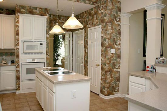 在衛(wèi)浴空間使用壁紙也要遵循“干濕”分區(qū)的原則。即使是防水壁紙也要避免直接被水沖淋或浸泡,因此只能用在“干區(qū)”(包括設在干區(qū)的洗衣間),經常處在潮濕狀態(tài)的“濕區(qū)”則不適于使用任何壁紙。為了解決這個問題,“干濕”分區(qū)的衛(wèi)浴可以將壁紙與馬賽克、瓷磚等墻材配搭使用。目前壁紙市場中的“水中花”防水壁紙是專門為衛(wèi)浴空間設計的,使用紙基PVC為基材,表面PVC層較厚,所以防水性能極佳,遇水也不會吸收水分,反而會呈現(xiàn)出透明水滴沾滿墻面的清涼畫面。該壁紙還具有抗霉變、防掉色等功能,避免了壁紙因長期處于潮濕環(huán)境脫色而變得“不美”。清理起來更是異常簡便,可以用質地柔軟的干布直接擦拭。