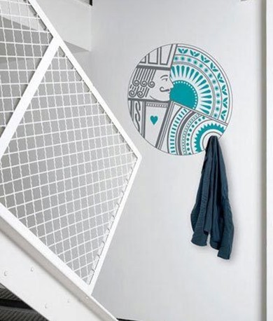 白色的墻面上裝飾一個掛鉤,如果不設(shè)計好很有可能破壞室內(nèi)的美感,還會顯得很突兀。如果我們在這么墻壁上手繪一幅小圖案,就會達(dá)到不一樣的效果呈現(xiàn)給大家,會讓你的居室變得美麗又可愛。