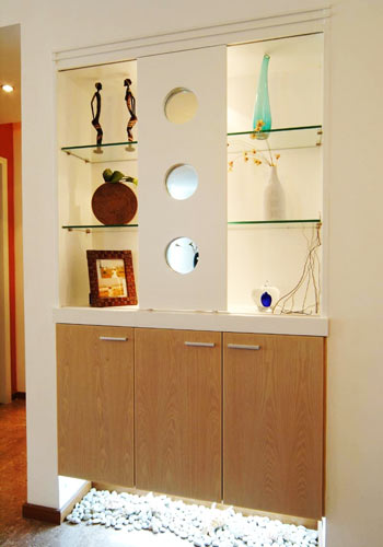 7、在玄關(guān)處擺放的家具要以不影響主人的出入為原則。如果居室面積偏小,可以利用低柜、鞋柜等家具擴(kuò)大儲(chǔ)物空間。還可通過(guò)改裝家具來(lái)達(dá)到一舉兩得的效果,如把落地式家具改成懸掛的陳列架,或把低柜做成敞開(kāi)式掛衣柜,增加實(shí)用性的同時(shí)又節(jié)省了空間。