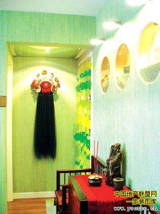 玄關的墻面往往與人的視距很近,常只作為背景烘托。因此,我們應該把握的原則是:重在點綴達意,切忌堆砌重復,且色彩不宜過多。