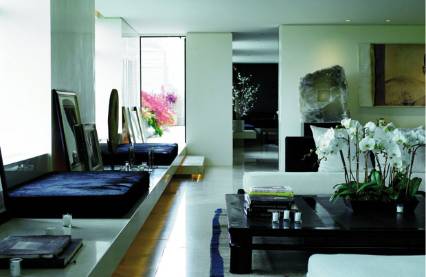 寬敞的公寓里那種老練而富有當(dāng)代感的風(fēng)格來自經(jīng)典的黑白色塊,來自對大理石和柚木等珍貴材料的巧妙使用,也來自那些東方韻味的元素(Donna Karan是東方文化狂熱的追隨者)。這個住宅內(nèi)部,從大到沙發(fā)小到蠟燭的一切,在設(shè)計時都力求滿一個明確的目標(biāo),即“簡單又別致地思考”。而這一理念也讓Donna Karan設(shè)計的時裝擁有著柔和的線條、富有雕塑感的外觀以及最簡約的風(fēng)格,顯得如此的與眾不同。這間紐約的寓所是Donna Karan的庇護(hù)所,她希望和家人朋友一起在這個絕對放松的空間里拋開一切獲得新生:雖然這里只有一間臥室,但是家里的每個角落都能找到柔軟的椅子,而所有的沙發(fā)也都能打開作為床來使用。