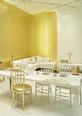 其中,金銀的光澤由于牽連著實物的價值,比較容易獲得解釋。值得注意的是人們檢驗金銀的標準,即“成色”,所考究的是它們的純度,猶如人們檢驗一個人的品質或者出身,或者諸如此類的問題一樣。尤其自近年以來,純用金色或銀色,而不是將它們拿來做鑲邊的做法日趨流行,當然可以說這是金融危機之下人們尋求補償心理的某一側面反映,卻也可以說是在一個變幻而浮華的世界里,人們重新回到了古老的永恒品質的路途上。不管怎么說,還有什么能比真金白銀更無需修飾、無需任何其他的附加物,自己便能證實自身的價值呢?