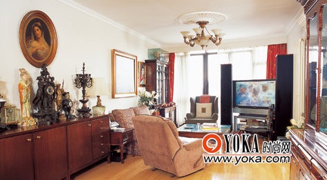 客廳內(nèi)擺放了眾多的古董,形成一道獨(dú)特的風(fēng)景線