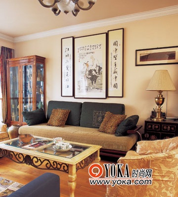 家中的字畫隨處可見,搭配客廳內(nèi)歐式家具,別有一番文化碰撞的味道