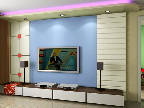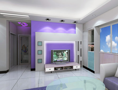 電視背景墻的燈光布置,多以主要飾面的局部照明來處理,還應(yīng)與該區(qū)域的頂面燈光協(xié)調(diào)考慮,燈殼尤其是燈泡都應(yīng)盡量隱蔽為妥。背景墻的燈光不像餐廳經(jīng)常需要明亮的光照,照度要求不高,且光線應(yīng)避免直射電視、音箱和人的臉部。收看電視時,應(yīng)有柔和的反射光作為基本的照明就可以了。
