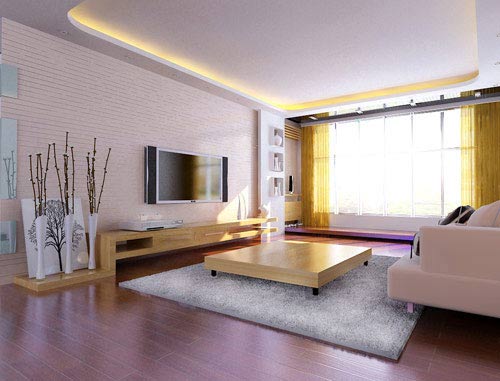 以往人們家的電視墻一般與其他墻面一樣,而現(xiàn)在往往選擇電視墻與客廳其他墻面不一樣。對電視墻進(jìn)行單獨(dú)的設(shè)計(jì)與裝修,如采用紋理粗糙的文化石鑲嵌。從功能上說,文化石可以吸音,避免音響對其他居室的影響,從裝飾效果上看,它烘托出電器產(chǎn)品金屬的精致感,形成一種強(qiáng)烈的質(zhì)感對比,十分富有現(xiàn)代感。旁邊設(shè)置兩個櫥架擺放著主人心愛的藝術(shù)品,點(diǎn)綴其間,體現(xiàn)主人的高雅氣質(zhì)。