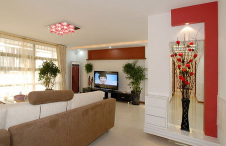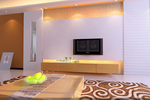 客廳是家人休閑、親朋好友相聚的場所,而目前大眾家庭娛樂的手段主要是看電視、看VCD、唱卡拉OK等,于是,客廳的電視背景墻成了最吸引人們眼球的地方。事實(shí)上,在家裝設(shè)計(jì)中,電視背景墻早已成了設(shè)計(jì)的“焦點(diǎn)”,也是體現(xiàn)主人個性化的一個特殊空間。
