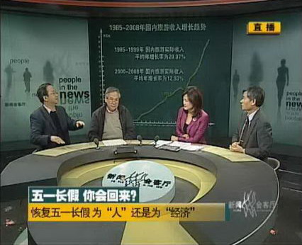 蔡繼明:我想談?wù)勎业目捶?,假日改革的目的?yīng)該是以人為本,這在經(jīng)濟(jì)學(xué)上叫一個(gè)規(guī)范判斷。但是廣東做的這種假日改革的實(shí)際目的不是以人為本,它不是為了人,它是為了經(jīng)濟(jì)。而且就算客觀上我們也要分析,如果說我贊成它推行帶薪休假,而且他說,如果哪個(gè)單位不推行帶薪休假要嚴(yán)厲的制裁,這非常好。既然你推行帶薪休假,為什么要引導(dǎo)人們一定在五月份出行?你的目的是什么呢?是為了拉動(dòng)廣東的旅游經(jīng)濟(jì)。這樣做的結(jié)果是維護(hù)了老百姓的休息權(quán)呢,還是強(qiáng)迫老百姓的休息權(quán)?為什么要在廣東的人民一定在五一節(jié)前后在這七天里邊來出行,而否認(rèn)了我們在一年自由選擇出行的時(shí)間,這是為了人還是為了經(jīng)濟(jì)?
