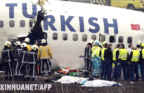 2月25日,在荷蘭阿姆斯特丹的斯希普霍爾機場,部分墜機事件遇難者遺體(下)被轉移到機艙外。一架載有135名乘客的土耳其航空公司客機當天上午在阿姆斯特丹的斯希普霍爾機場墜毀。 新華社/法新
