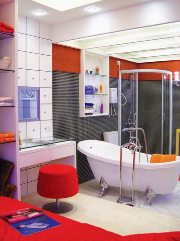 3)浴缸前墻采用磚砌貼瓷磚時(shí),地磚最好先貼至墻下方,然后再貼壁磚,以避免產(chǎn)生破口。