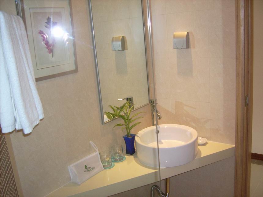第一、以嚴(yán)謹(jǐn)?shù)牟季诛@示其秩序井然?,F(xiàn)在許多家庭的衛(wèi)生間普遍較小,因此,在布局上應(yīng)緊湊一些。浴缸、洗臉盆、座便器是衛(wèi)生間的三大件,布局中的通常秩序是三者呈平行勢。有的消費(fèi)者為節(jié)省面積將洗臉盆設(shè)于墻角落,這種方法既不大方,又礙手礙腳,為體現(xiàn)布局的整體協(xié)調(diào),衛(wèi)生間其它的附屬品也要風(fēng)格一致。如鏡面玻璃,可將鏡掛在洗臉盆上端,如果任意設(shè)在浴缸一側(cè)墻上或其他部分,就顯得沒有安全感,而且不協(xié)調(diào)。