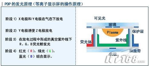 等離子顯示器(Pla**a Display Panel,PDP)是利用惰性氣體電子放電,產(chǎn)生紫外線激發(fā)所涂布的紅、綠、藍(lán)螢光粉,呈現(xiàn)各種彩色光點(diǎn)的畫面。PDP的出現(xiàn),使得中大型尺寸(約40~70寸)顯示器的發(fā)展應(yīng)用產(chǎn)生極大變化,以其超薄體積與重量遠(yuǎn)小于傳統(tǒng)大尺寸 CRT電視,在高解析度、不受磁場(chǎng)影響、視角廣及主動(dòng)發(fā)光等勝于TFT-LCD的特點(diǎn),完全符合多媒體產(chǎn)品輕、薄、短、小的需求。
