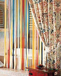 這樣的浴簾,指望它能夠擋住四下紛飛的水滴顯然是不現(xiàn)實的,因此如果在家里掛這樣一幅浴簾,你最好有享受泡泡浴的好心情。彩虹浴簾的作用更在于美化你的衛(wèi)生間,不論你有沒有躺在浴缸里發(fā)呆,它都會給你帶來非常好的視覺效果。當然為了增加洗澡的私密性,需要在條狀的浴簾外再加一道密不透風的簾子,不但有了實際功能,還能產(chǎn)生層次感。