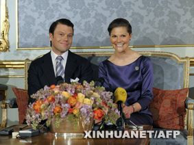 2月24日,在瑞典首都斯德哥爾摩,瑞典王儲(chǔ)維多利亞與男友丹尼爾·韋斯特林舉行媒體見面會(huì)。瑞典王室24日正式宣布王儲(chǔ)維多利亞與男友丹尼爾·韋斯特林訂婚,婚禮定于明年舉行。新華社/法新