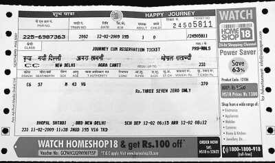 售票員接過記者填好的乘客信息單,將相關信息輸入電腦,很快,一張巴掌大小的紙片從打印機中出來。記者如數(shù)把錢遞了進去,他清點之后把那張紙片遞了出來。這就是印度的火車票?!記者感到很好奇。票面上清楚地印著記者剛才填寫的主要信息(見上圖)。除了這些,還有一些廣告。