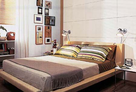 臥室墻面上裝飾畫的安排與客廳里的收納、展示并存的方式相同,并為雪白的墻壁增加了許多審美價值。窗下的矮柜可以根據(jù)需要存放文件、書籍或臥室必備的常用物品,營造富有人情味的生活氛圍。