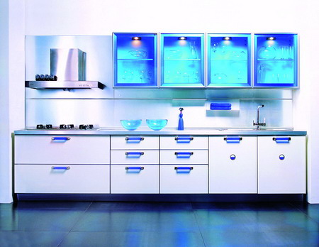 在造型上屬敞開式廚房,一字型櫥柜精致、流暢、溫馨,在色彩上更具時尚的韻味,在設(shè)計上體現(xiàn)人性化設(shè)計理念,而在功能配置上融入了更多的電器化、智能化科技含量。